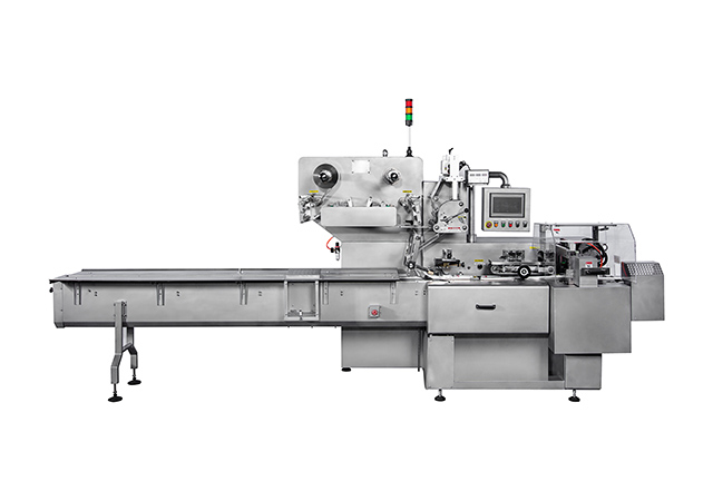 適用于無托盒條狀餅干及無托盒條狀產品的包裝。手工將物料放置到滑槽,可實現喂料、推料、走膜、夾運、封切等一系列的包裝。